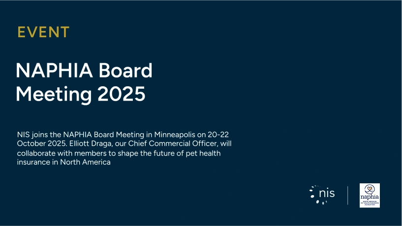 NIS joins the NAPHIA Board Meeting in Minneapolis on 20-22 October 2025. Elliott Draga, our Chief Commercial Officer, will collaborate with members to shape the future of pet health insurance in North America