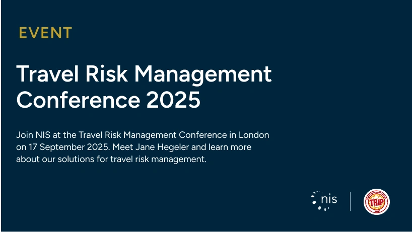 Join NIS at the Travel Risk Management Conference in London on 17 September 2025. Meet Jane Hegeler and learn more about our solutions for travel risk management.